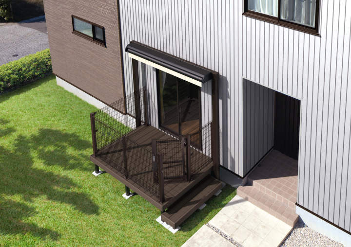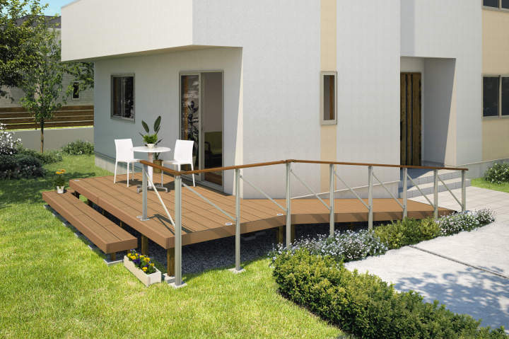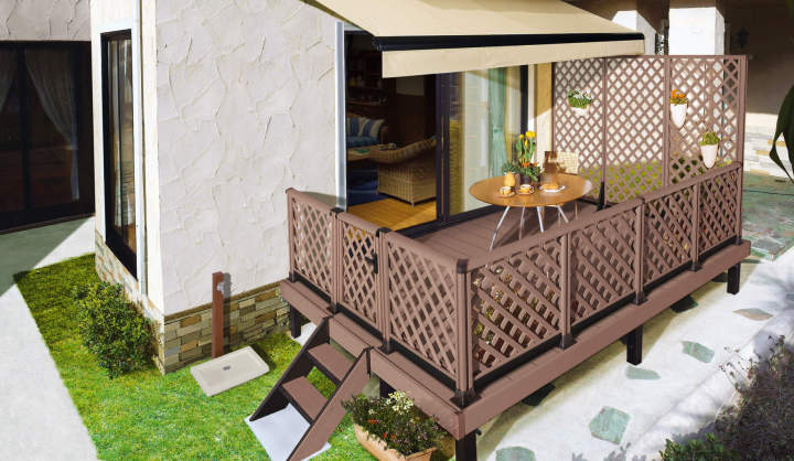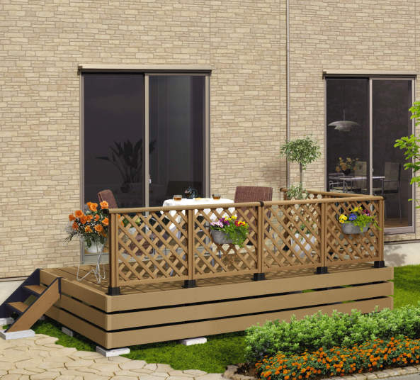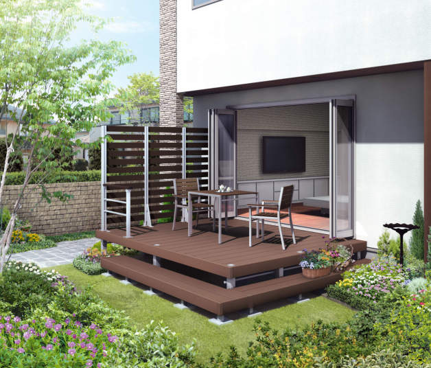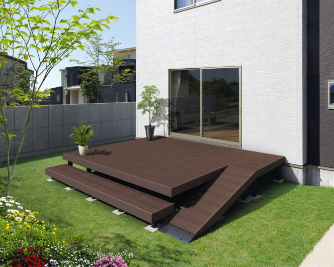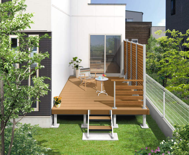木粉を配合し、温もりのある木質感を再現した人工木デッキ。